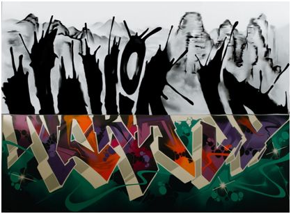 京东和诺基亚邀请了两组涂鸦达人,分别在相对的两面墙体上各完成中西两种风格的半幅画作——西式涂鸦的五彩纷呈,东方水墨的简约意境,姿势十分到位,对比十分鲜明。中西涂鸦的较量过后,引来了整个实验的高潮!实验师将诺基亚7放置于两幅画之间,用产品独有的双视野拍摄模式,同时记录镜头前后的两面半幅画作。两面风格迥异的涂鸦画作竟被天衣无缝地拼合在一起,显示出“NOKIA JD”的字样!