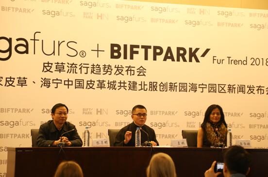 2017年10月25日, “Saga Furs + BIFTPARK”2018皮草流行趋势发布会暨北京服装学院、世家皮草Saga Furs、海宁中国皮革城共建“北京服装学院海宁时尚产业园”新闻发布会在北服创新园举行。