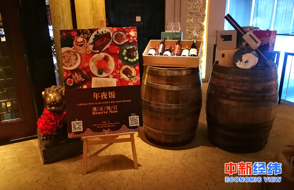 北京某饭店预订年夜饭展示牌 中新经纬 张燕征 摄
