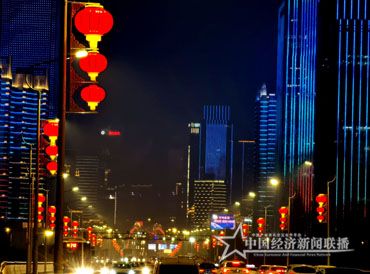 武汉长江二桥街道两旁大红灯笼高高挂起,增添节日气氛。