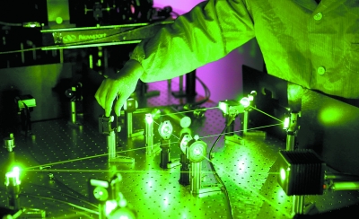 工作人员调试超冷原子光晶格平台的激光伺服系统。