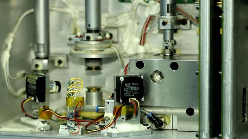 上图是液桥模型的简要示意,液体位于上下两个碟片之间,分别对上下两个碟片进行不同温度加热形成温度差,从而在液体表面形成热毛细对流。段俐介绍说,该实验设备可通过控制完成注液、拉桥、清桥、温度控制、温度和图像采集及打包传输等操作。其中,实验用的流体介质-硅油被储存在液缸内,空间实验时,通过高精度PI电机牵引实现注液、拉桥,最后完成建桥这一过程,液桥的高径比和体积比参数由拉桥和注液电机控制实现。同时,段俐特别介绍说,这个设备里设计安装了清桥系统,一旦在太空实验过程中出现断桥现象,可以通过电机驱动清桥系统擦洗桥柱实现再建桥过程,这也是此次项目实验装置的重要特色之一。
