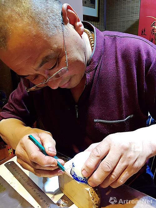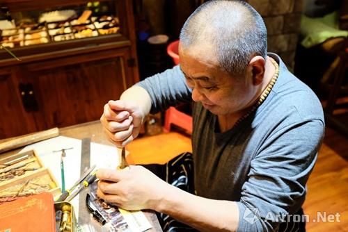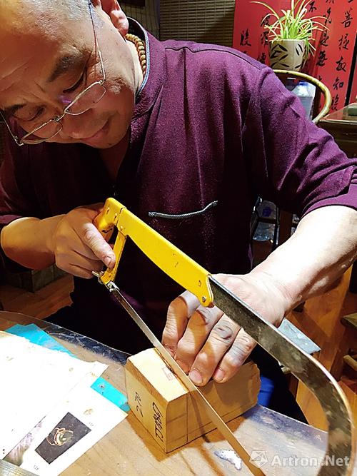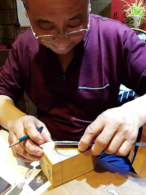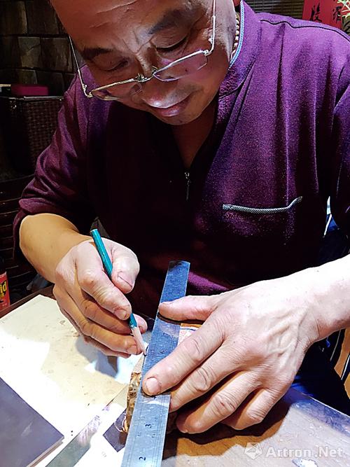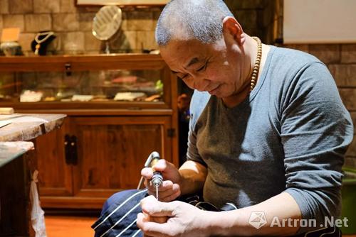 泰衍堂·紫云檀舍店主兼烟斗制作者王叔在制作烟斗