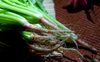 还有不得不提的就是,葱的白色根部了,这个部位的营养不亚于葱叶,而且吃的时候最好连着须部一起,作为调味品。先用油稍微爆一下,根部和须部的香味很快就可以释放出来,可以为菜品增香不少。