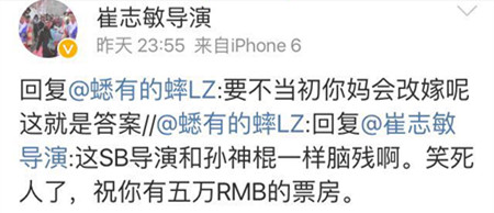 @崔志敏导演 对网友的评论感到愤怒,昨天(30日),他在微博多次手撕网友,“出口成脏”。