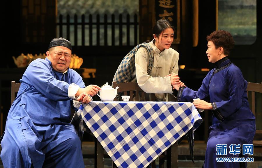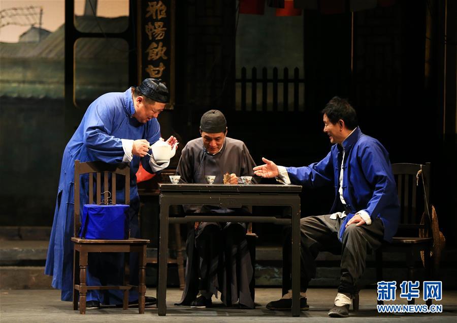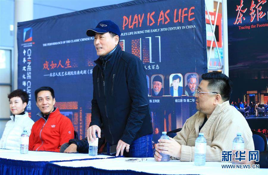 11月1日,在加拿大米西索加市,演员龚丽君、冯远征、杨立新和梁冠华(从左至右)出席新闻发布会。当日,北京人民艺术剧院的经典话剧《茶馆》在加拿大大多伦多地区米西索加市举行新闻发布会并进行带妆彩排。该剧将于11月2日与3日在加拿大多伦多正式演出。新华社发(邹峥摄)