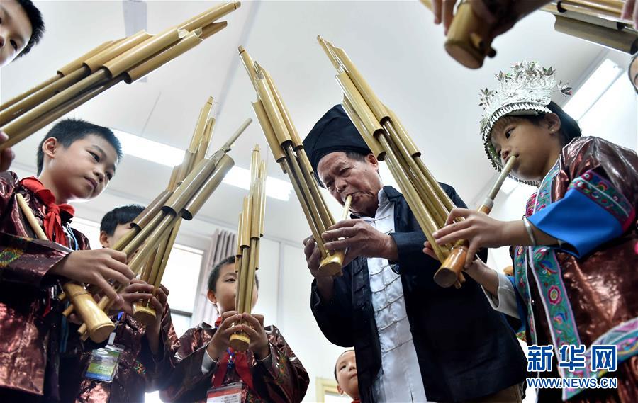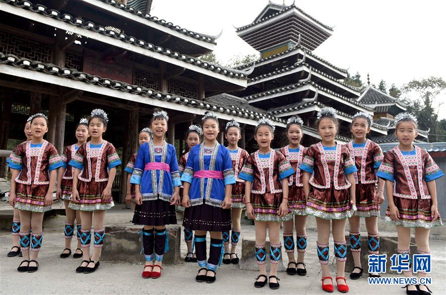 11月18日,在三江侗族自治县良口乡和里村,学生们在演唱侗族大歌。三江侗族自治县位于广西北部,地处湘、桂、黔三省(区)交界地。近年来,该地依托民俗资源优势,按照“一乡一品、一校一特”目标,大力实施民族文化进校园、进教材、进课堂活动,通过整合教师、非遗传承人、民间艺人等师资力量,组织编写民族文化校本教材,聘请民间师资到校开设“非遗学堂”,将侗族大歌、侗族器乐、民族舞蹈、侗族刺绣、侗族农民画等非遗文化引进中小学课堂,丰富中小学生文化生活,促进非遗技艺代代相传。新华社记者 黄孝邦 摄