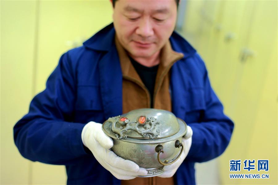 清雍正孔庙祭器(11月24日摄)。位于孔子故里山东曲阜的孔子博物馆即将向公众开放,“尘封”已久的衍圣公府家藏文物将露出“真容”。孔府馆藏文物共分陶瓷器、珐琅器、玉石器、织绣品、书籍、竹木牙雕、钱币等34类,馆藏34万余件/套,大多是原衍圣公府家藏,部分为建国后搜集或出土。新华社记者 王阳 摄