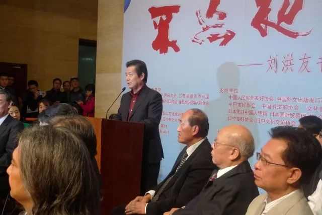 本次展览艺术家刘洪友也在祝贺会上发表了激情澎湃的感言,首先他对参与、支持本次展览的所有单位和个人表示由衷的感谢,并感谢祖国和人民给予这次展览机会,使自己得以向祖国人民汇报多年海外奋斗的成绩。提及自己在书法创作、艺术教育及文化交流等方面的成就,刘洪友谦逊地表示自己所做远远不够,仍要再接再厉为弘扬中华文化、促进中日友谊贡献力量。
