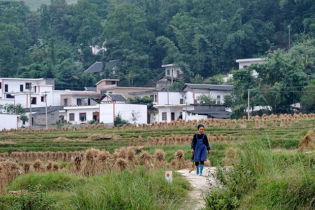 盛装的村民走在修葺一新的村道上 摄影:邱太建