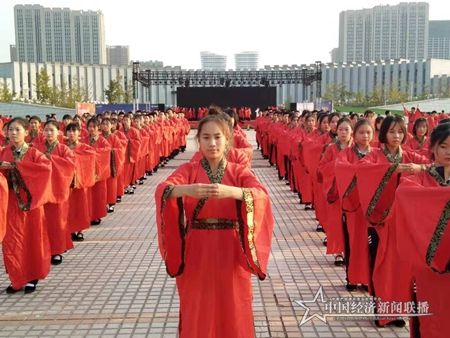 河南冠礼天下文化传播有限公司选送的节目、是由著名礼仪文化研究学者王杉杉女士发起的大型开场舞蹈《汉邦礼仪》,三百多名演员以其阵容强大,主题突出,表现形式新颖,【充分展现了中华民族自古以来衣冠上国、礼仪之邦的形象,礼动新乡,】产生了震撼人心的艺术效果。