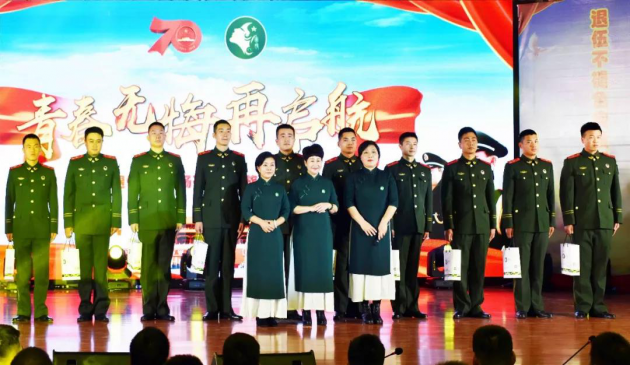 中华志愿者协会军嫂志愿者服务总队负责人、军嫂品牌创始人马春秀向10位退伍老兵代表赠送拥军慰问品。她说:“今天很荣幸,受部队之邀来到这里,亲自为即将退伍的老兵表达嫂子们的深切的祝福与温暖的祝愿!送上嫂子们精心挑选的礼物和一封热情洋溢的慰问信,愿这份心伴着兄弟姐妹们踏上归乡之路,一路珍重!”随后,与退伍老兵们合影留念。