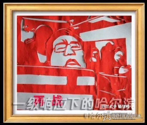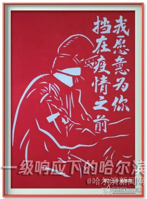 杨丽莉老师是市级非物质文化遗产项目呼兰剪纸呼兰区第七中学校传承基地的一名美术老师。春节期间,杨老师看到了84岁的钟南山院士虽然人处暮年,但在紧急关头依然出山走在抗击疫情最前线的壮举而感动,尤其是看到因为工作劳顿钟南山院士在火车上睡着的照片时,自己决定把这些壮举用剪纸作品形式展现出来。