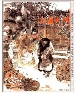也就是说,在祭祖这样的家族事务中,宝钗等作为薛家乃是外姻,无入祠堂参拜之礼,而宝琴就更隔了一层。家族之间的区隔在清代贵族当中本来极为分明,作者这样一写,似乎就暗示了宝钗终将与宝玉配成姻缘了。