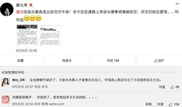 更令人大跌眼镜的是,潘粤明发了一条秒删的微博,似乎在暗指董洁撒谎: