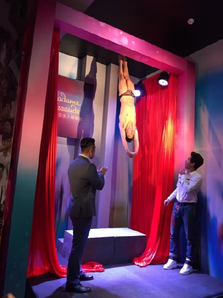 为了能把这一精彩瞬间完美还原,重庆杜莎夫人蜡像馆对田亮进行了长达4个小时的量身,收集了超过200个数据,蜡像制作团队根据测得的数据,历经近10个月的精心雕琢与制作,最终一比一真实还原了田亮跳水时的神态和标准动作。