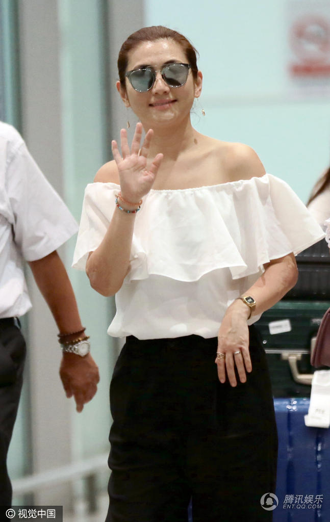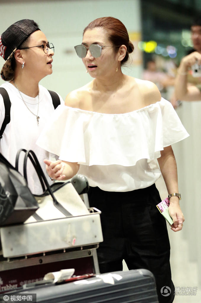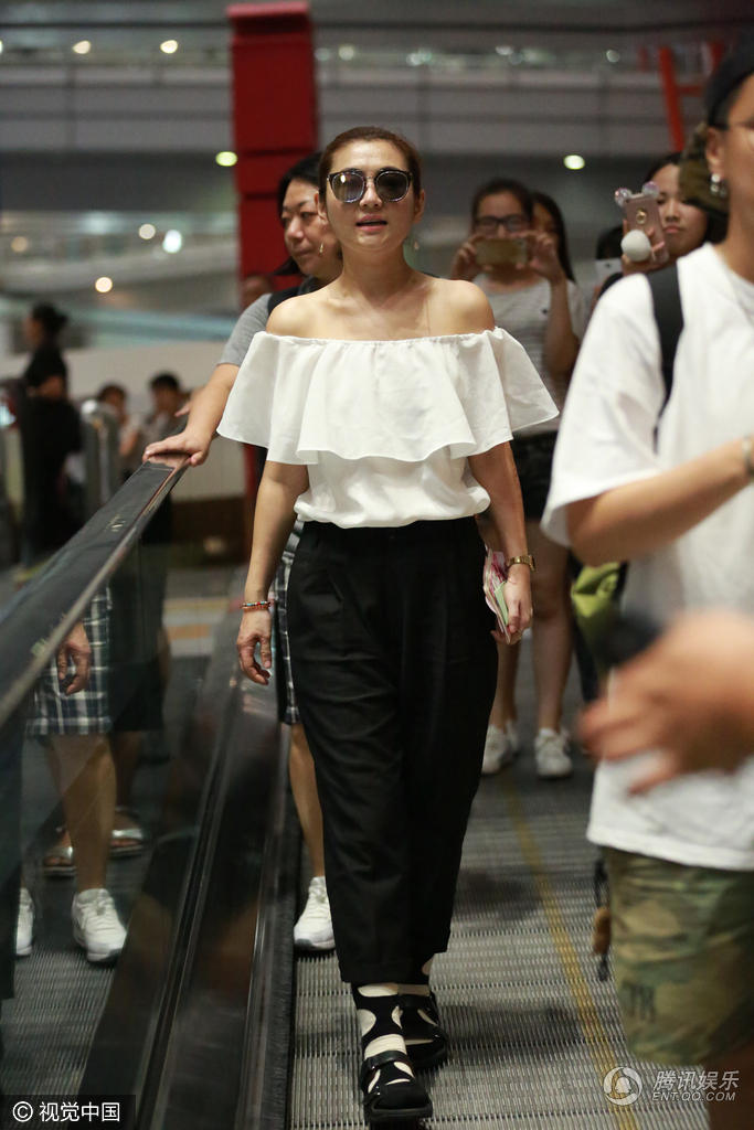 Selina穿露肩装现身首都机场,一字领大秀香肩锁骨不惧露疤痕,大批粉丝前来接机,离婚后的她真是越活越精彩。