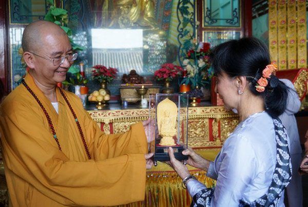 昂山素季说:“去年我访华时专程到灵光寺朝拜过佛牙舍利,印象深刻。”