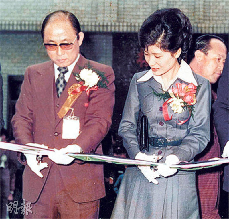 1977年,崔太敏(左)与朴槿惠(右)一起出席剪彩活动