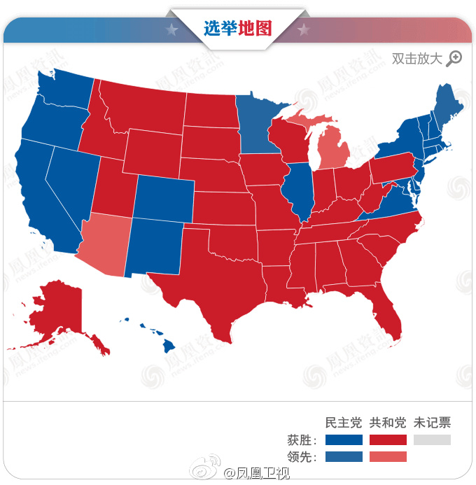 美国总统选举初步结果揭晓,共和党总统候选人唐纳德·特朗普战胜民主党候选人、前国务卿希拉里·克林顿赢得总统选举,将成为美国第四十五任总统。
