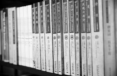 书架上摆满了许渊冲的译作。徐俊雄摄