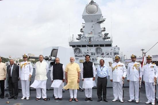印度总理莫迪与高官视察海军新型军舰