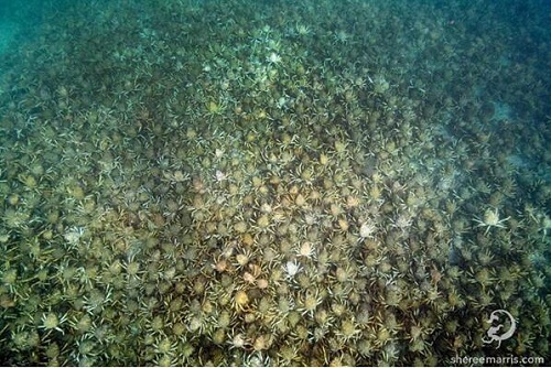 希尔还说道,在当地,很少有人知道蜘蛛蟹集体迁徙的事。她也被这一幕深深震撼到了,这是她潜水20年以来看到的最为庞大的蟹群迁徙。