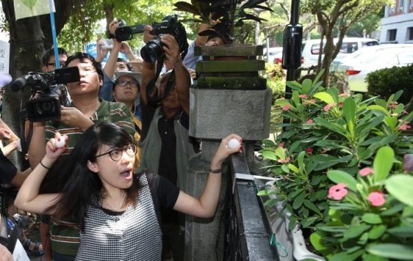 台湾学生4日朝“教育部”丢鸡蛋,要求废止“专科以上学校强化学生兼任助理学习与劳动权益保障处理原则”。