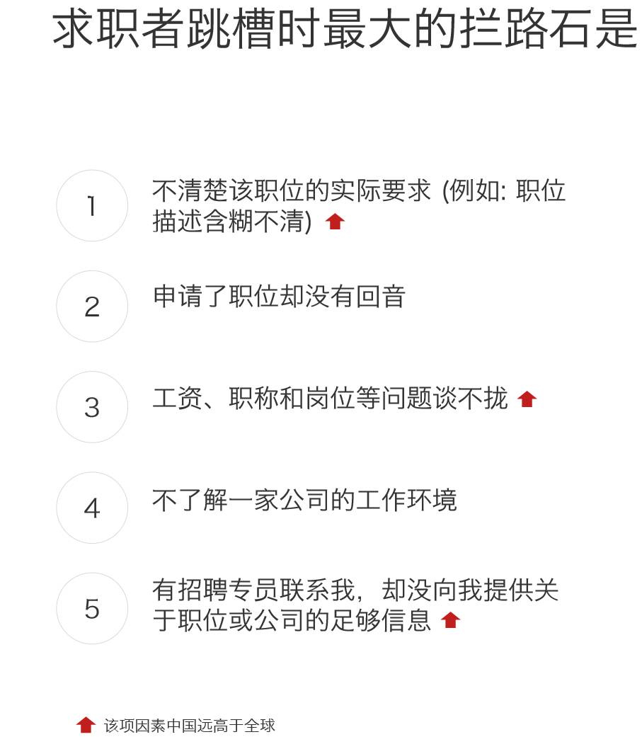 同时,工资、职称和岗位达不到自己的期望,这样的现实问题也会让职场人很苦恼。除此以外,企业招聘负责人也常常会把职位和公司的信息摆在桌子下面,信息的不透明往往也是最大的拦路虎。