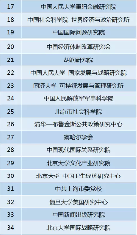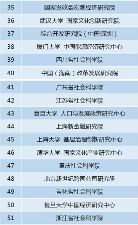 入选2015年美国宾夕法尼亚大学智库项目发布的全球智库综合排名的中国智库;2015年上海社会科学院对我国智库排名中的全部智库;入选 2015年中国社会科学院全球智库排名的中国智库;2015年四川省社会科学院对我国智库排名中的全部智库;2014年零点咨询集团对我国智库排名中的全 部智库;2015年入选的25家首批国家高端智库。(除去不符合智库定义的或没有自己网站的智库)