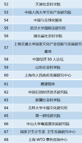 本次排名共选取了68个国内典型智库作为评价对象,来源主要有: