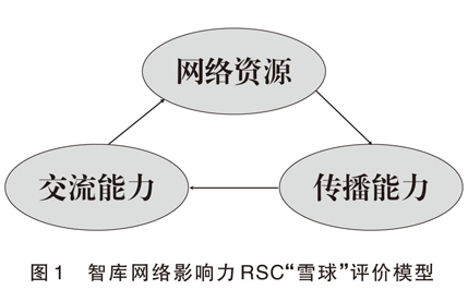 智库网络影响力的RSC“雪球”评价模型由三部分构成,分别为网络资源指标R(Resources)、网络传播能力指标S(Spread)和网络交流能力指标C(Communication)。当智库在三个维度上不断“滚雪球”时,其网络影响力就会不断增强;仅在一个或两个维度上“滚雪球”时,“雪球”就变得长条化或扁平化,其影响力必然受到影响;当智库不再“滚雪球”时,影响力逐渐消失。