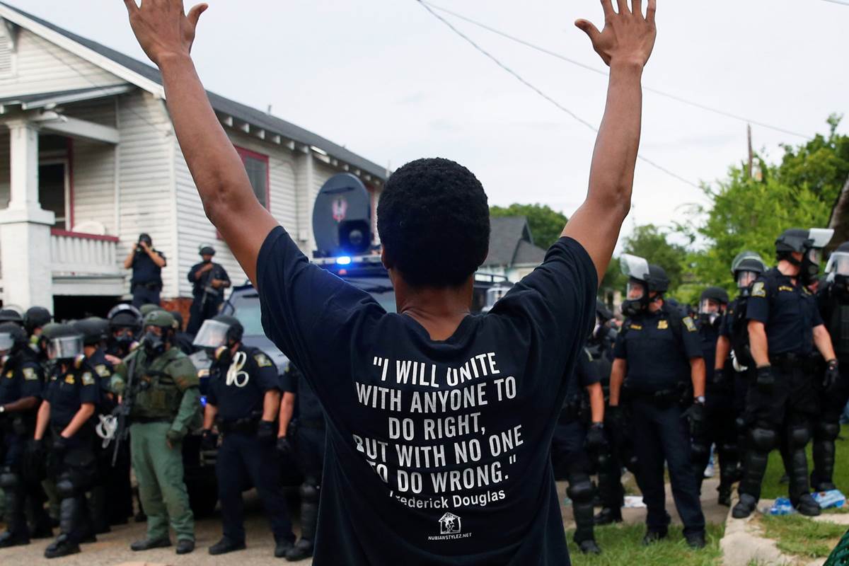 7月5日,巴吞鲁日两名白人警察与一名兜售光盘的黑人男子发生冲突,在将其按倒的情况下开枪,致黑人男子死亡。