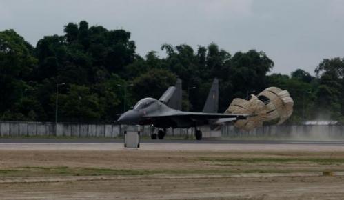 图为在新型机场降落的印度空军SU-30MKI战斗机