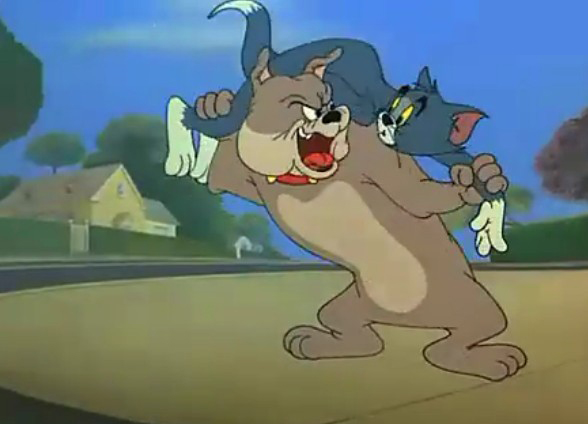 其实,我们都很熟悉。那几只狗狗的品种,和动画片里老把汤姆打得满地找牙的那只狗是一样的。这个品种有个中文名:“美国恶霸犬”(不是针对谁)。