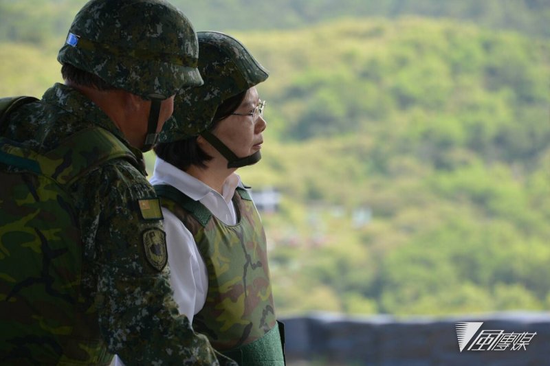蔡英文在25日上午视察八军团在屏东三军联训基地仁寿营区举行的“联勇操演”实弹演习,这也是她520就任后,首度以“三军统帅”的身份视察实兵军事演习。