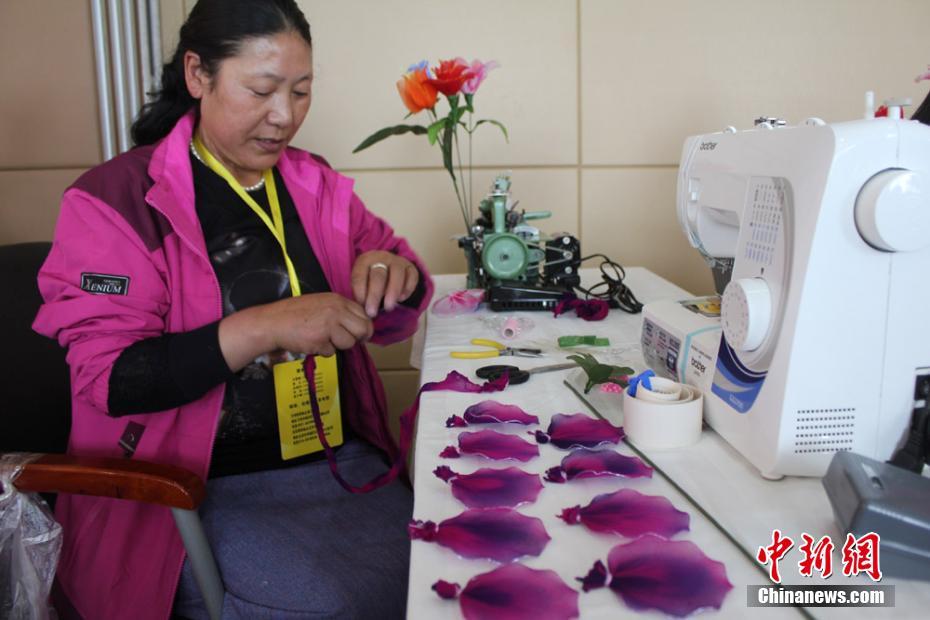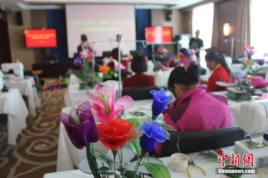 10月22日,由甘肃省委组织部、省卫计委和省妇联联合举办的甘肃省第八期农村“两癌”(宫颈癌和乳腺癌)贫困妇女创业技能和康复能力培训班继续在兰州举行。来自全省52个贫困县的52名农村贫困妇女将参加为期12天的培训,期间她们将学习康复知识,以及丝网花、缝纫等技艺。徐雪 摄