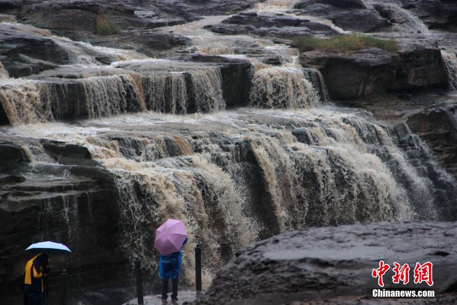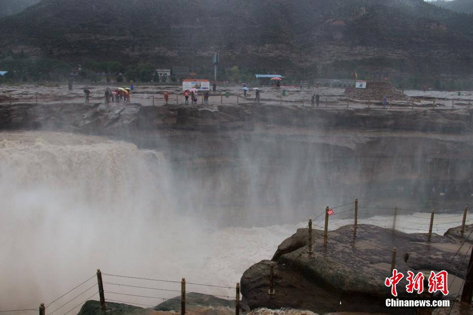 近日,陕西宜川县迎来连阴雨天气,位于该县境内的壶口瀑布景区也出现“水底升烟”的景观。据了解,“水底升烟”主要因为黄河水在壶口的落差较大而激起水雾腾空,好似水底升起的烟雾一般。张一辰 摄