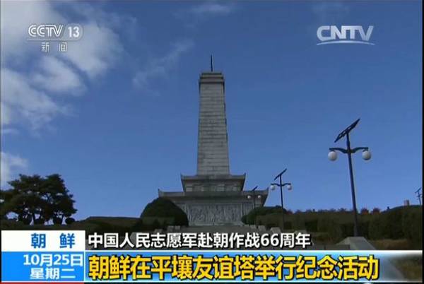 央视新闻10月25日报道,10月25号是中国人民志愿军赴朝作战66周年纪念日。当天,朝鲜在平壤友谊塔等地隆重举办纪念活动。