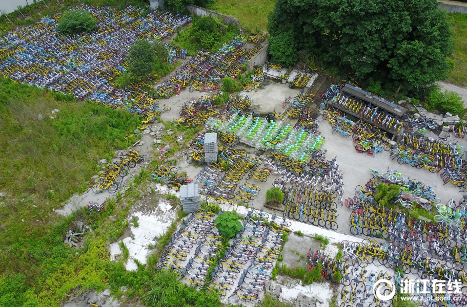 6月6日,杭州钱江世纪城春和钱塘小区西侧的一处空地上,堆满了五颜六色的共享单车,约有上千辆。据周边居民反映,大量堆放共享单车的现象已持续了约两个月,每天还会有车辆将各种共享单车运进空地。