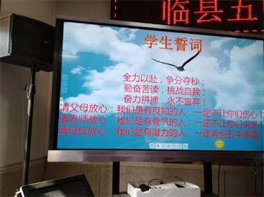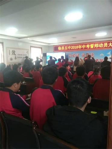 保剑锋从磨砺出,梅花香自苦寒来。百日冲刺战中考,不拿高分誓不休!春风和煦,阳光明媚,在播种希望的季节里中考的脚步又一次向我们走来。为鼓舞初三学子士气,增强斗志,备战中考,3月12日,临县五中在学校会议室隆重举行了2018年中考百日誓师大会。学校校长牛宝明、副校长郭卫平、闫志峰、初三全体师生参加了中考誓师大会。