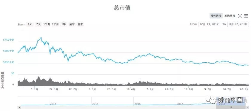造富神话频出的币圈已连跌半年之久。Coinmarketcap数据显示,与今年2月份的高点相比,半年以来,数字货币资产已蒸发6300多亿美金(折合人民币43119亿)。1月8日,数字货币总市值达到8300多亿美金,如今已快跌破2000亿美金。