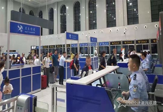 【中国经济新闻联播绥芬河讯 王吉珍 梁海东】8月17日深夜22时,绥芬河铁路口岸查验通道仍然灯火通明,人头攒动。绥芬河出入境边防检查站雷鹏同志现场带班指挥、细化部署,执勤民警全力投入,认真、快速地检查入境旅客证照。受持续强降雨影响,周边东宁口岸闭关,大量中国游客滞留在俄罗斯境内,无法按时正常入境。绥芬河出入境边防检查站得知这一情况后,迅速与绥芬河火车站及俄罗斯边检部门沟通协商,接纳转道而来的滞留旅客,从8月16日到18日,绥芬河出入境边防检查站共验放旅客 1.57万人次,全部滞留旅客及时顺利通关。