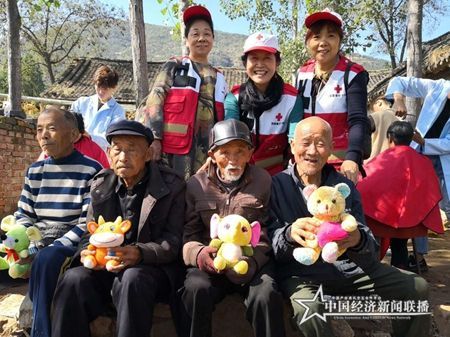 中国经济新闻联播河南登封10月8日电(屈伟林 通讯员梁宗飞)2019年10月7日,河南省红十字志愿服务办公室梁宗飞主任带领省红十字志愿者一行50余人慰问乔家大院里的老人们,给他们送去贴心的服务和多姿多彩的文化生活。