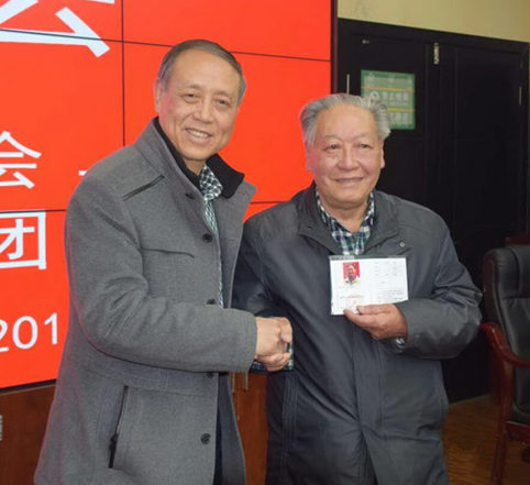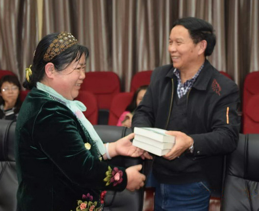 座谈会由贵州省写作学会理事,桐梓县原政协主席黄光荣主持,会上李庆䙗老师向省写作学会赠送他本人编著的《二十世纪风云录》一书。学会为感谢李老师的盛情,也专门向李庆䙗老师赠送书法作品一幅。接着贵州省写作学会副会长、遵义联络处主任黄先荣先生代表贵州省写作学会,隆重的向李庆䙗老师颁发贵州省写作学会会员证