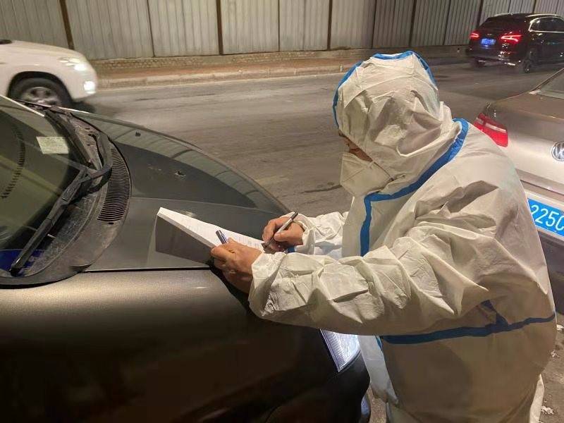深夜,疫情应急转运队驾驶员栾玉先完成转运后,填写车辆换班交接单