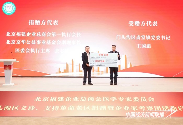 在义诊活动的同时,北京福建企业总商会医学专家委员会还向门头沟区斋堂镇公益捐赠100万元人民币,专项用于支持革命老区乡村振兴事业。门头沟区委书记喻华锋,区委副书记、代区长吕鸣,北京福建企业总商会党委书记、医委会主席陈春玖等出席了捐赠仪式。