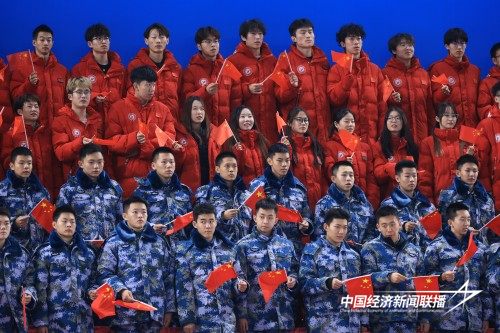 活动在庄严的升国旗仪式中走向高潮,由哈体院担任过亚冬会旗手的同学组成护旗方队,高擎国旗入场,全场师生肃立,目光追随着缓缓升起的五星红旗,气氛庄重而激昂。随后,国际奥委会委员、冬奥冠军张虹带领全场师生郑重宣誓:“以青春热血筑牢梦想,用实干担当报效祖国”,同学们的铮铮誓言响彻全场。紧接着,千余名师生共同唱响《歌唱祖国》。歌声磅礴而深情,既传递出对祖国的无限热爱,也昭示着新时代龙江青年砥砺前行、续写荣光的坚定决心。至此,这堂沉浸式冰雪思政课在激昂的爱国共鸣中圆满落幕,余韵悠长,振奋人心。