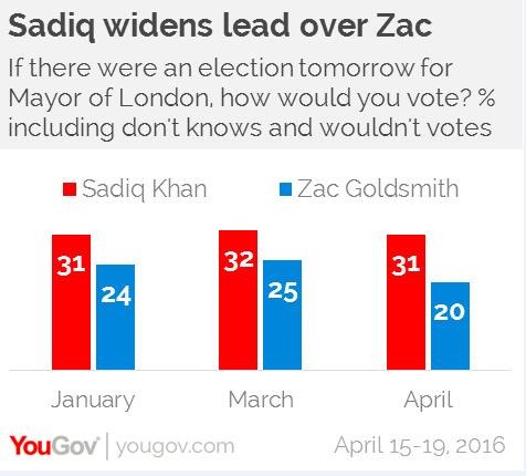 YouGov发布的民调结果显示,55%的受调查者不介意萨迪克的穆斯林身份,33%的受调查者不能接受穆斯林当选市长,12%的受调查者不置可否。在“谁更能处理伊斯兰极端主义问题”的民调中,萨迪克得到了16%的民意支持,戈德•史密斯的支持率为13%。