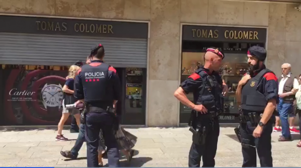 西班牙警察进入市中心的珠宝店进行突击调查